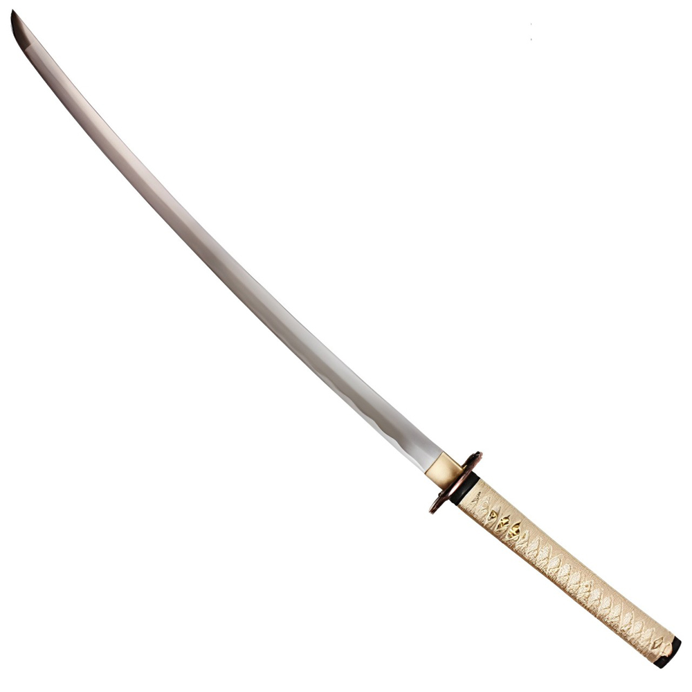 Discover the 41.25" Handmade Gold Katana, a Masterpiece of Artistry and Power. Featuring a 1045 Carbon Steel Blade, this Katana is engineered for Strength and Durability, perfect for Collectors and Practitioners alike. The Ray Skin Wrapped Handle provides a Comfortable Grip and a Unique Texture, enhancing both Functionality and Style. Comes complete with a Premium Sword Bag and Certificate of Authenticity, making it a stunning Addition to any Collection.
