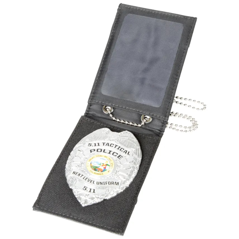 The 5.11 S.A.F.E. 3.4 Wallet is a low-profile holder for permanent attachment of your S.A.F.E. Badge (badge included). This nylon wallet is reinforced with leather on the bottom for easy access to interior ID and badge panels. Use the attached 14” chain for wear around the neck, or easily remove it for pocket-carry. It’s thin, lightweight construction reduces bulk and weight and allows for badge and ID carry. The 5.11 S.A.F.E. 3.4 Wallet is the best choice for hands-free badge and ID carry.