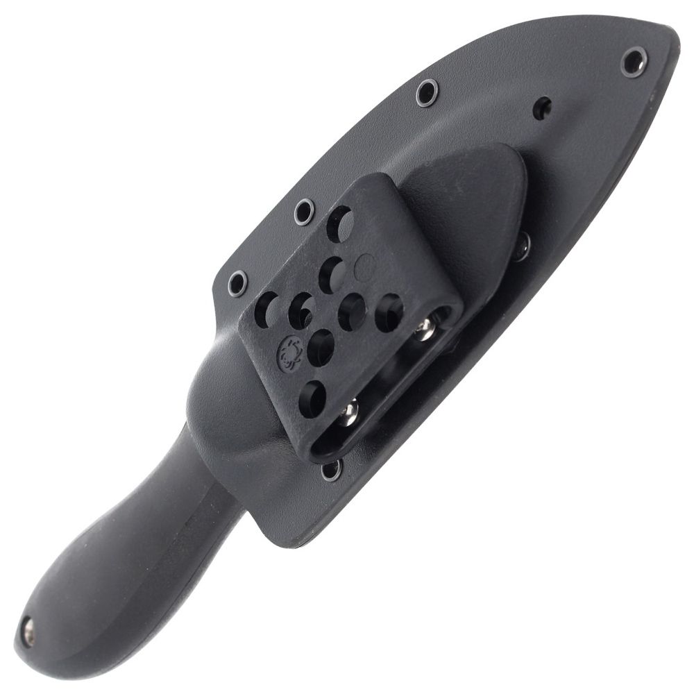 In the hand the knife conveys a unique feeling of balance, called by some a sweet spot. The sweet spot is due to the blade and handle being comparable in weight. This balance transfers into a feeling of steady control over the cutting edge. The FRN handle three-dimensionally fills out the palm and is inlayed with a panel of non-sliding Kraton. Highly recommended for hunting and camping both models come in a molded Boltaron sheath with multi-position G-Clip fastening system.