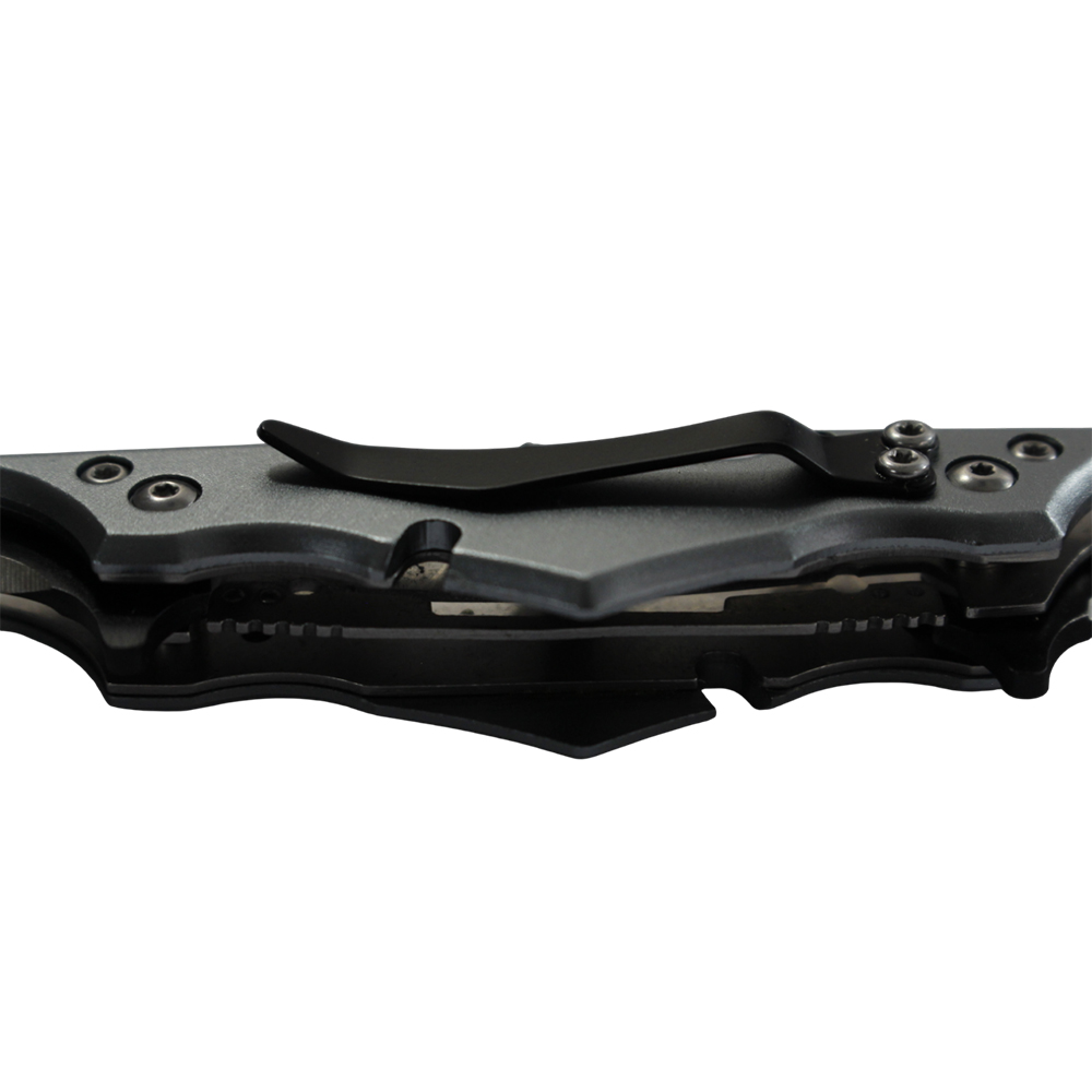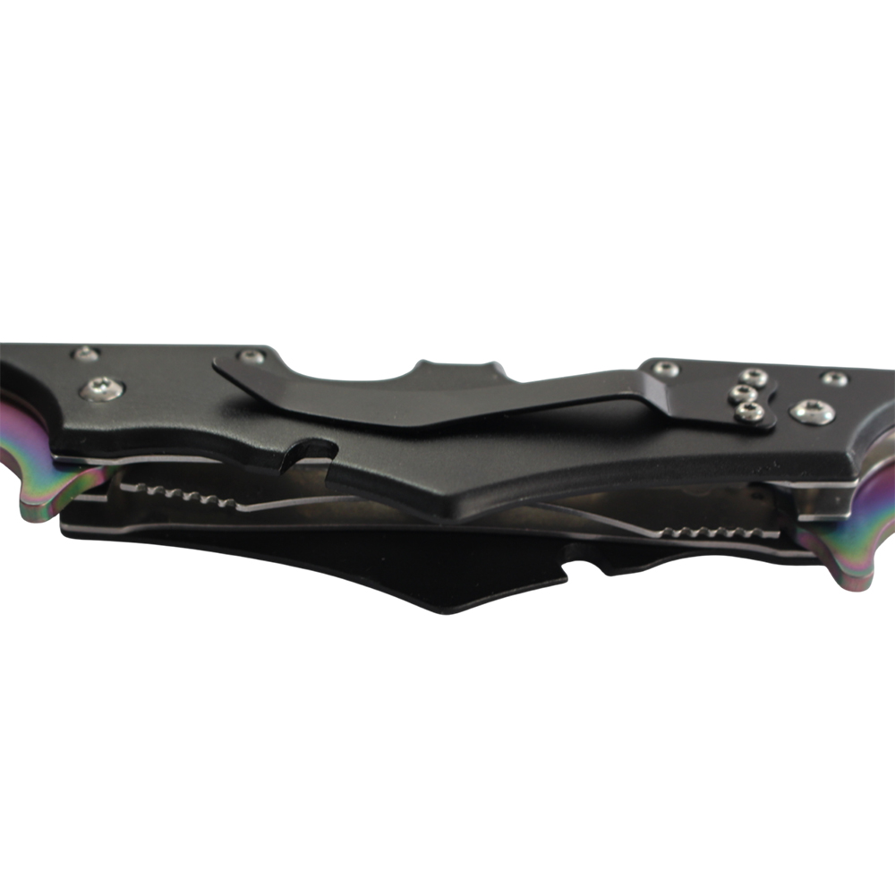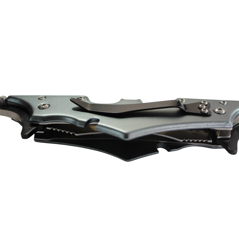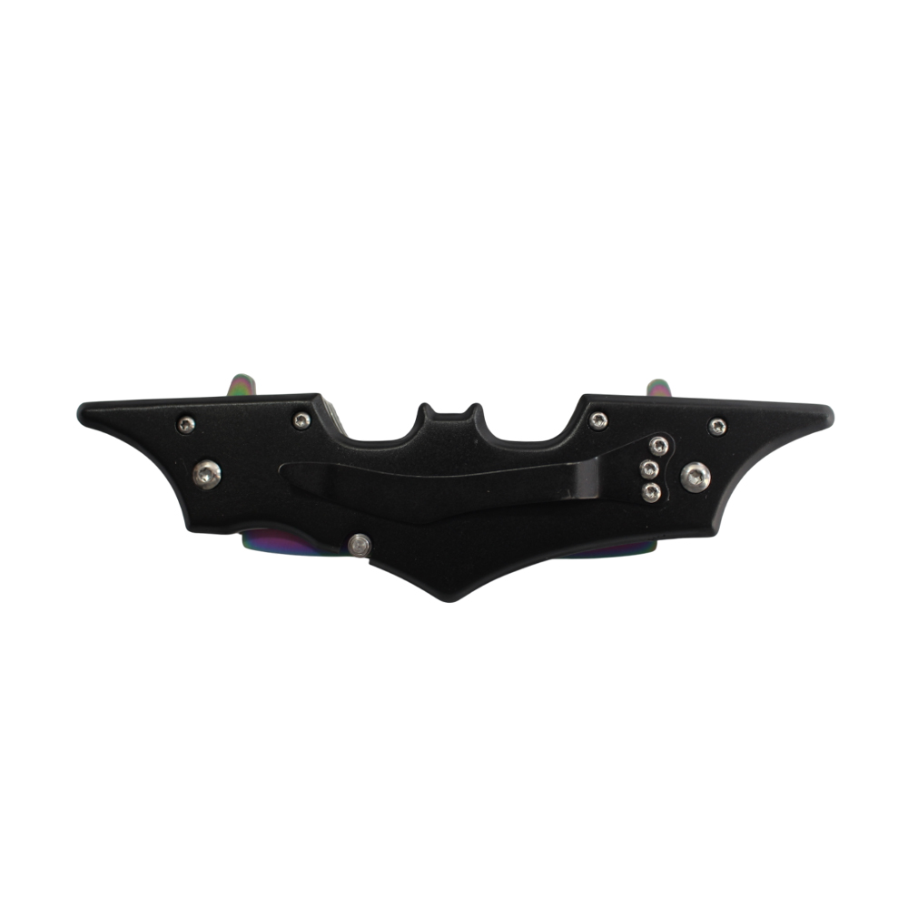 The Dual Blade Assisted Bat Knife is a uniquely designed folding knife featuring a bat-wing-inspired dual-blade system. With an aluminum handle and assisted opening mechanism, this knife is both functional and eye-catching.