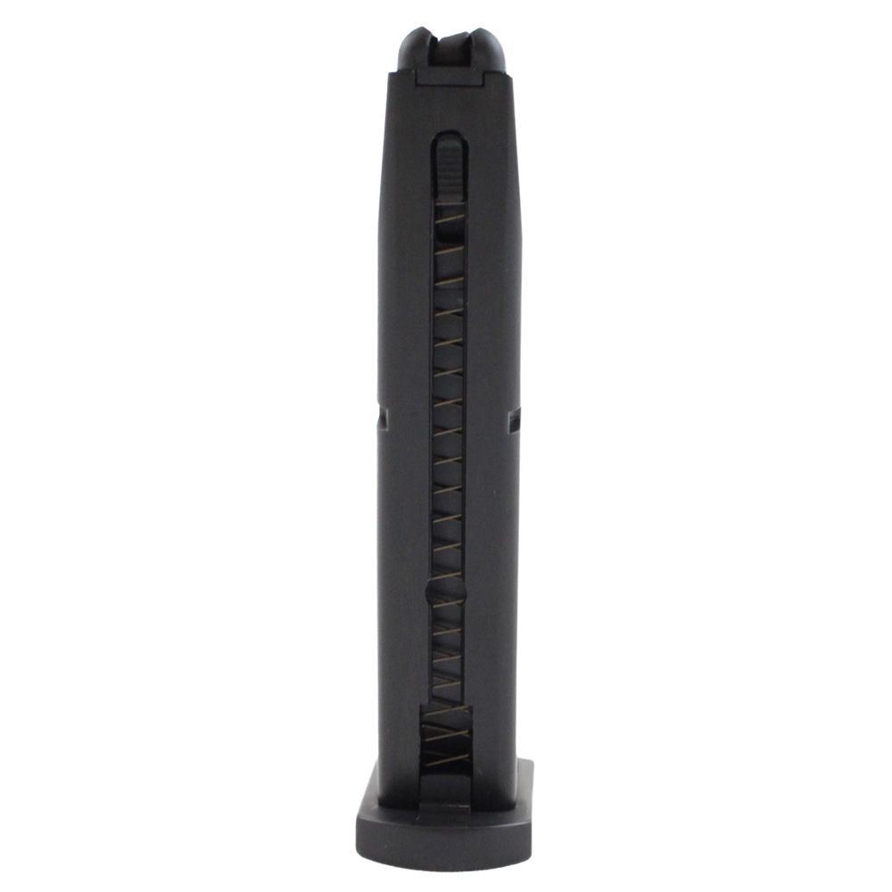 Keep your G&G GPM92 airsoft pistol locked and loaded with this spare magazine. It has been internally upgraded with G&G’s latest safety technology. Fuel efficiency has been improved with a metal micro-filter that stops any liquidized green gas from passing through the gun. A collapsible safety valve has also been installed in case the gas tank becomes over-pressurized. It can hold up to 27 rounds.