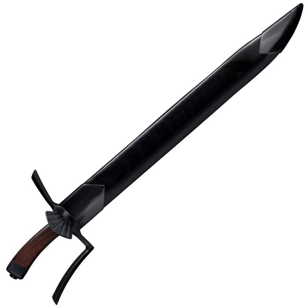 Designed by Luke LaFontaine and Dave Baker, Cold Steel’s new one-handed Messer is a sword that just has to be held to be appreciated! This modern interpretation of the historical German Langes Messer (or Long Knife) is beautifully balanced and a joy to use. Thinner and lighter than many of our current offerings, it handles almost like a giant Bowie Knife! Its clip-point style blade is fully sharpened on the primary edge, with an un-sharpened “false edge” terminating in a sturdy upswept point. The Messer’s stylish and functional cross-guard, knuckle bow and pronounced shell-shaped “Nagel” are also blued to match the blade and enhance the rich brown of the rosewood handle scales. Complete with a black leather scabbard with blued fittings, this beautiful new addition to our Man at Arms series has already become a firm favorite with our crew, and we’re sure it will be a popular addition to your collection!