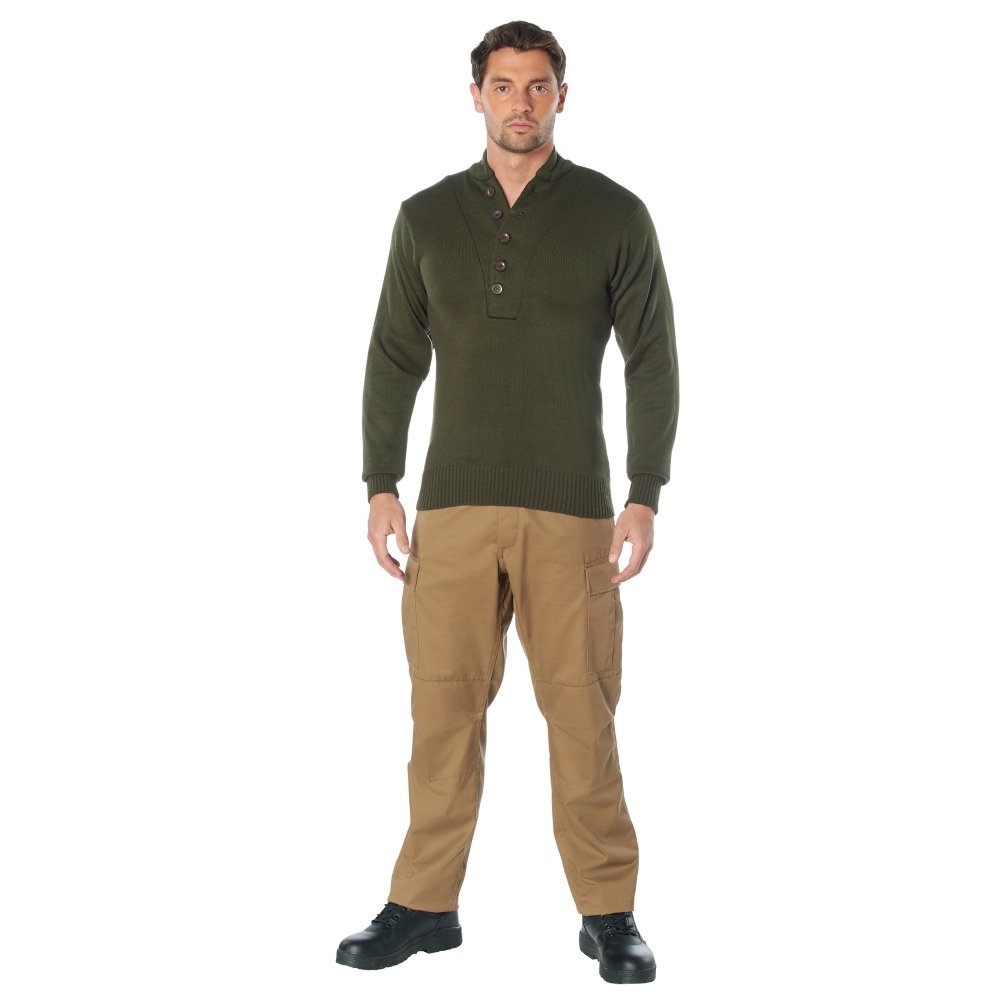 Mens GI Style 5-Button Acrylic Sweater Features 100% Acrylic , Elastic Knit Cuffs , 5 Button Front