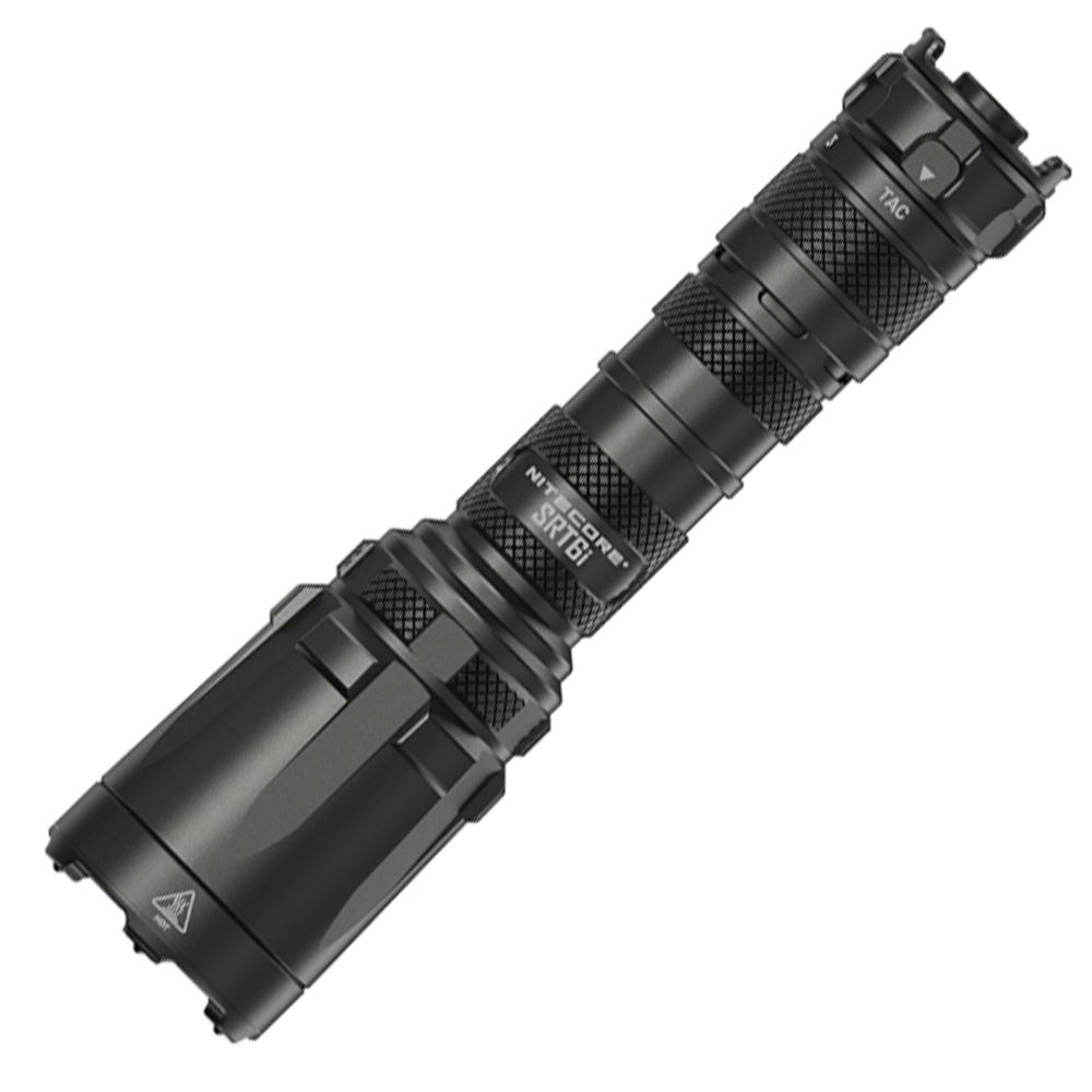 The Nitecore SRT6i tactical flashlight combines performance with Nitecore's Smart Ring selector for ease of use and precise control.The high performance LED produces a 2100 lumens max and reaches over 557 yards of beam throw. The stainless steel bezel with three silicone nitrided inlays reduces glass to rubble, making SRT6i an indispensable tool for emergencies. With an IP68 waterproof rating and a covered charging port, the SRT6i can be used safely in any climate, making SRT6i an amazing tactical package.