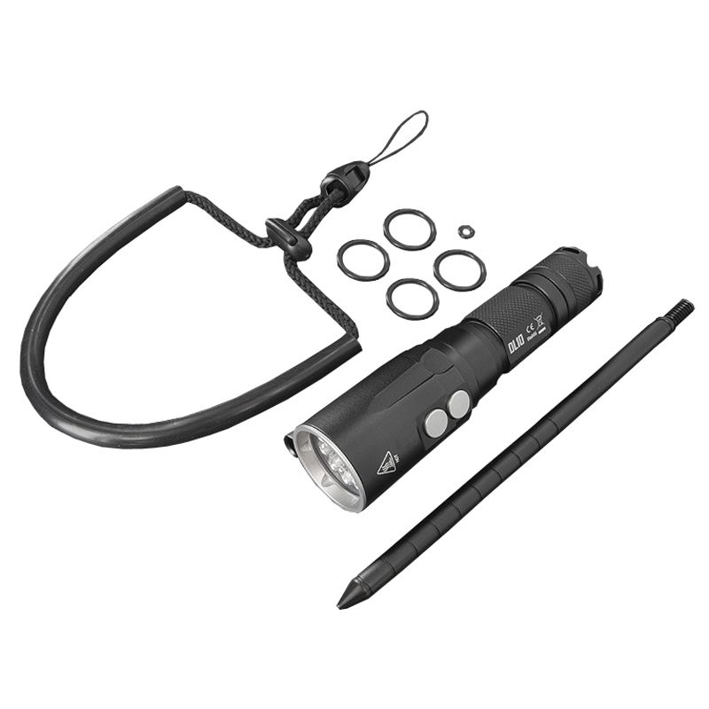 Diving light specially designed for underwater sport Utilizes a CREE XP-L HI V3 LED with 1000 lumens max output Integrated red auxiliary light for underwater photography Crystal Coating and Precision Digital Optics Technologies for extreme reflector performance Built-in threads for connecting the scuba diving pointer Reverse polarity protection Toughened ultra-clear mineral glass Constructed from aero grade aluminum alloy with HAIII military grade hard-anodized finish Tail stand capability Compact and slim body profile Easy one-handed operation Additional accessories such as a diving lanyard and scuba pointer help to increase gripping abilities, avoiding contact with dangerous objects and point to warning others Specifications: