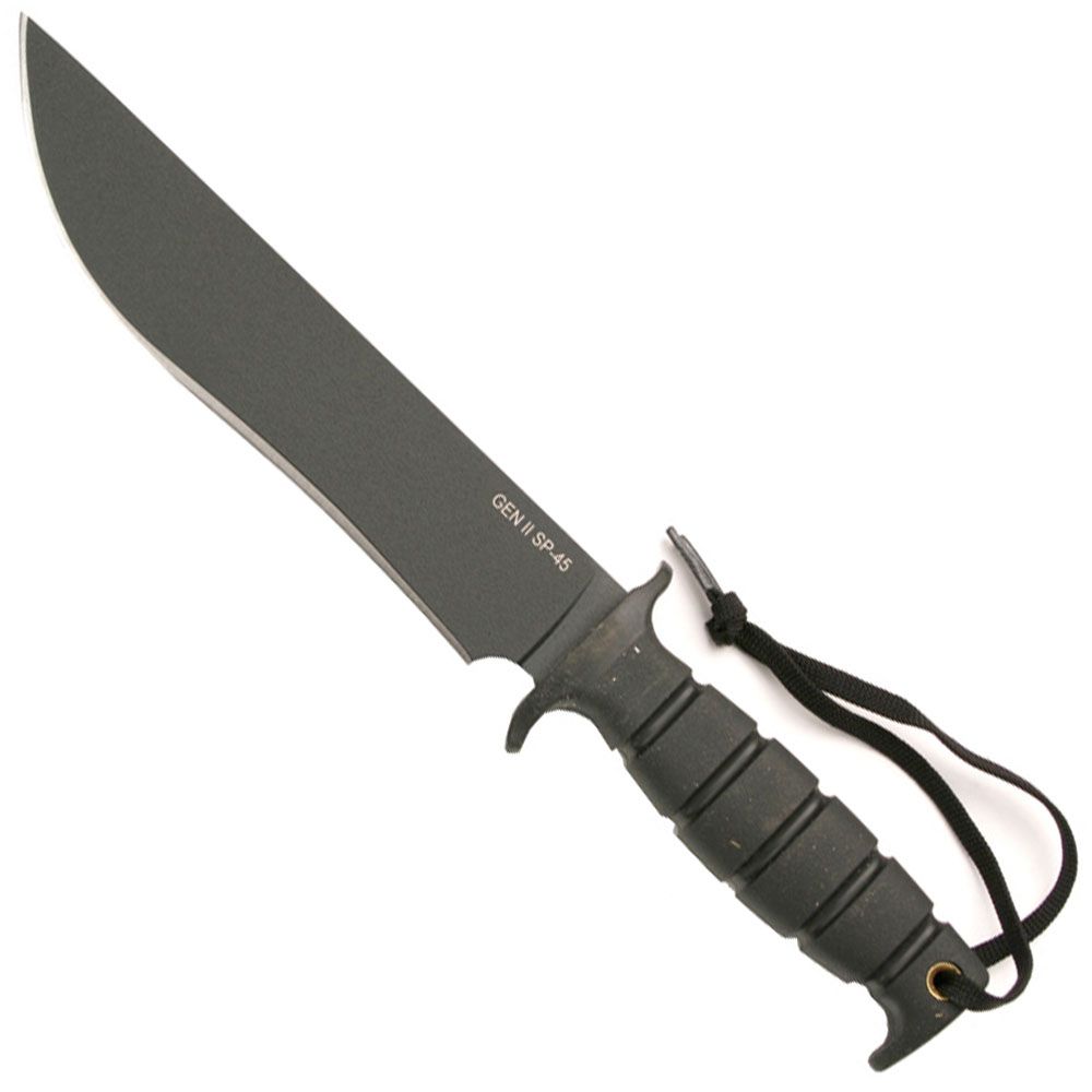 These knives feature 5160 steel and black texture powder coated blades, comfortable KRATON handles, full tang, & lanyard. Sheath included. Black Nylon Sheath with plastic insert for SP42, SP43 & SP45. Black Nylon Sheath for SP41 & SP40.