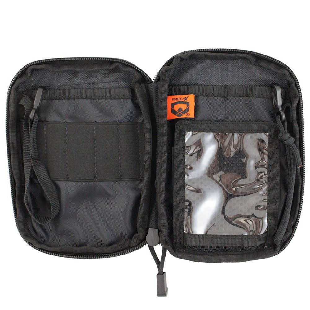This Raven X pouch is your new patriotic pocket. Designed for everyday carry, this tactical pouch has inner pockets for pens, knives, tools, as well as a foldout vinyl sleeve for documents, ID, or maps. Constructed from 1000D nylon with a double-zipper closure, mesh outer pocket, and snap button straps for MOLLE mounting.