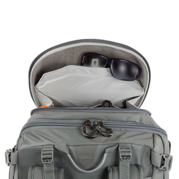 - Impact-resistant top pocket with internal organization to safely secure and stow valuables such as glasses, camera, binoculars, and phone.