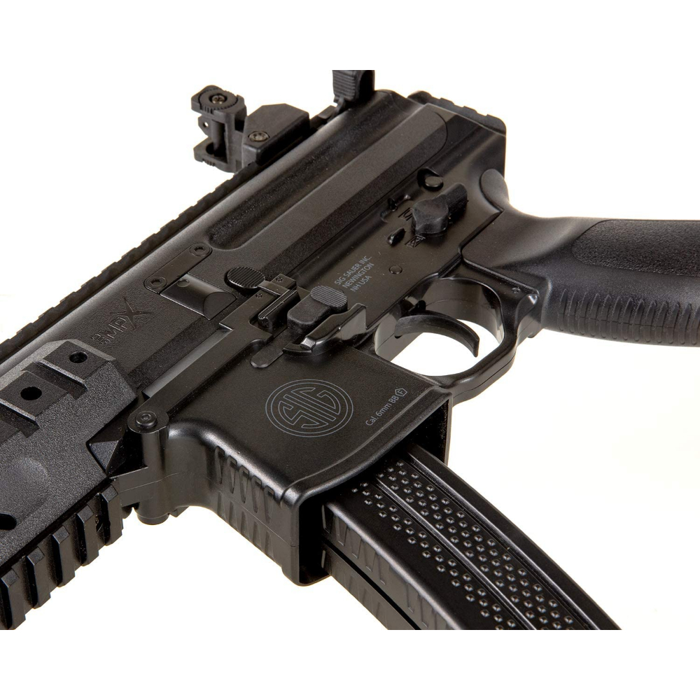 The sub-gun breakthrough 50 years in the making, with a new standard in operator safety and in-field adaptability; adopted in a budget-friendly spring rifle package. This backyard plinker is ready for use out of the box with a 500 round high capacity gravity fed magazine, 3-position polymer stock, and flip-up front and rear sights. With M1913 compatible rails all over this spring rifle, you can configure it it to your liking with optics, lasers, lights and grips.