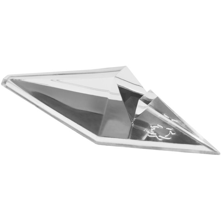 1 Large Display Stand. Acrylic diamond shape wedges are a simple eye-catching way to display your knives. They sit flat on a countertop or in a display shelf holding one opened knife at a 45 degree angle. Multifaceted and molded from sparkling clear Lucite that catch and reflect light, they are engraved with a Spyderco logo bug on the bottom