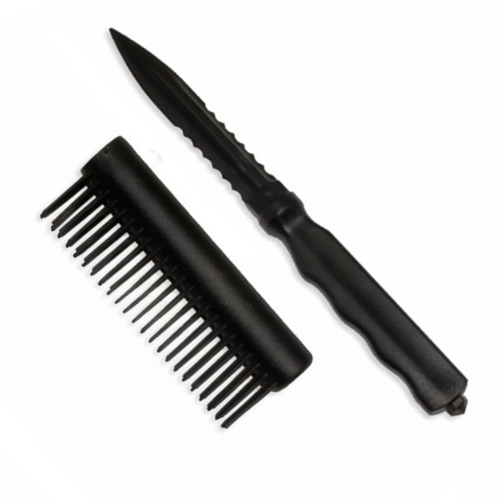 The StealthGuard Concealed Comb Knife is a discreet self-defense tool designed to blend in as an everyday grooming accessory. Its fluorescent color design gives it a casual, harmless look, making it ideal for environments where carrying a visible tool is not practical. With a quick pull, the comb separates to reveal a sharp ABS blade capable of delivering effective defensive strikes. A built-in window breaker/skull crusher adds even more utility, making this tool both protective and practical.