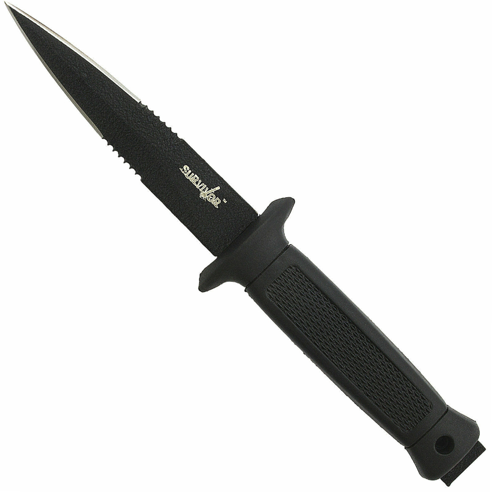 The Survivor Fixed Knife features a durable PTFE-coated blade designed for enhanced performance and resistance to wear. The fixed blade construction provides strength and reliability, making it ideal for survival situations and outdoor adventures. The PTFE coating offers additional protection against corrosion and reduces friction for smoother cuts. With its rugged design and practical features, this knife is a dependable choice for tough tasks and demanding environments.