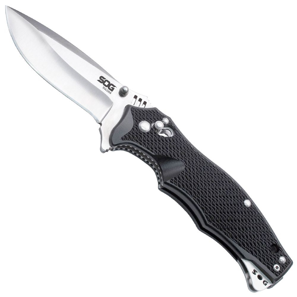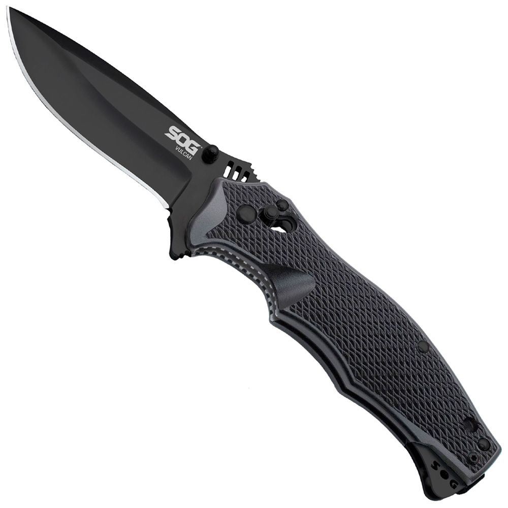 Built upon the M61 Vulcan’s reputation of speed, power, and versatility, the SOG Vulcan is also formidable with a powerful strength of construction. There is nothing weak about the Vulcan. For instance, our patented Arc-Lock can hold over 1000 lbs. of force. The full steel liners encased in glass reinforced nylon (GRN) handle give the knife rigidity and durability. The blade is a full .160" thick with drop point shape and includes a double thumb stud and kick for quick, ambidextrous deployment and use. Combining the usability and construction of the knife with a durable VG-10 stainless steel blade make this folder a great addition to the Vulcan name.